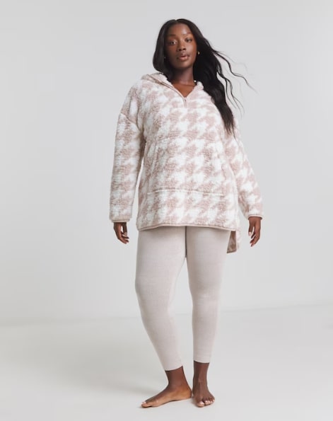 Stay on trend this season in our brand new Snuggle Top Lounge Jumper from Pretty Secrets. With a stylish dogtooth print quarter zip and relaxed fit, this will become your new favourite.